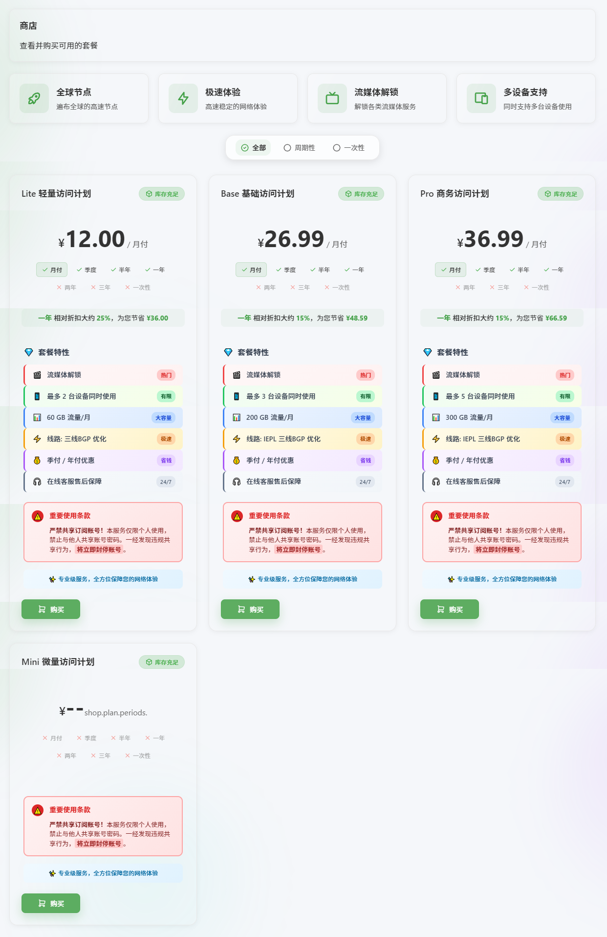 - 建议月付购买服务,以降低跑路风险。