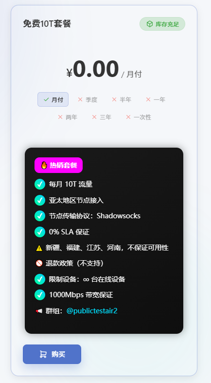 购买套餐送共享小火箭账号,无节点倍率套路!
